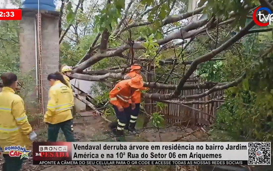 Vendaval derruba árvore em residência no bairro Jardim América e na 10ª Rua do Setor 06 em Ariquemes - Vídeo