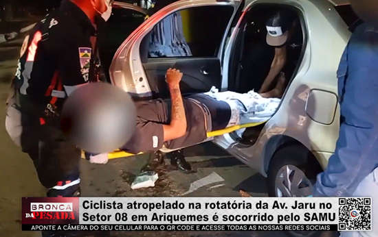 Ciclista atropelado na rotatória da Av. Jaru, no Setor 08, em Ariquemes, é socorrido pelo SAMU - Vídeo