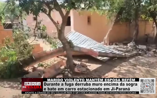 MARIDO VIOLENTO MANTÉM ESPOSA REFÉM – Durante fuga derruba muro na sogra e bate em carro estacionado em Ji-Paraná - Vídeo
