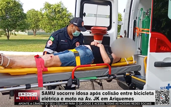 SAMU socorre idosa após colisão entre bicicleta elétrica e moto na Av. JK em Ariquemes - Vídeo