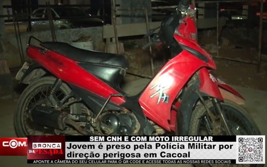 SEM CNH E COM MOTO IRREGULAR - Jovem é preso pela Polícia Militar por direção perigosa em Cacoal - Vídeo