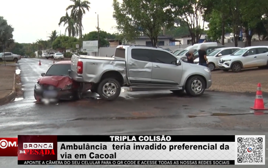 TRIPLA COLISÃO - Ambulância teria invadido preferencial da via em Cacoal - Vídeo