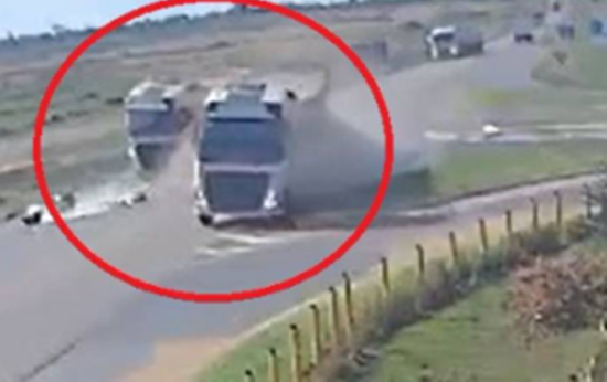 ASSISTA VÍDEOS: carretas graneleiras da mesma empresa se envolvem em acidente na BR 364, entrando em cidade próxima a Vilhena