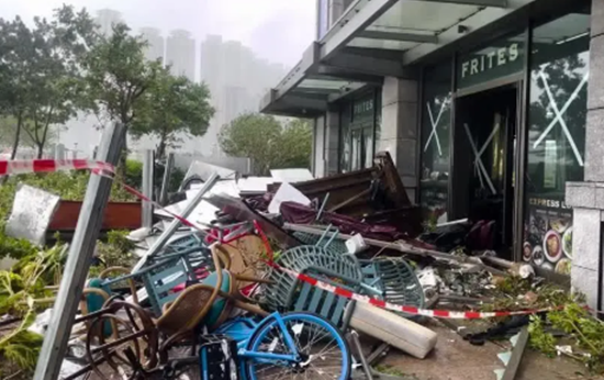 Ao se aproximar do centro financeiro internacional de Hong Kong na manhã desta quarta-feira (24), a tempestade trouxe ventos fortes que derrubaram árvores e arrancaram andaimes de prédios, atingindo rajadas máximas de 168 quilômetros por hora.