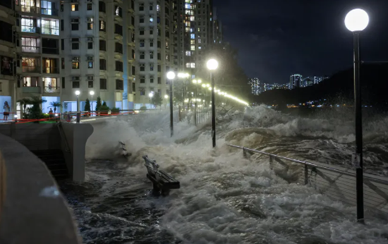 Marés de tempestade de mais de três metros foram registradas em partes da cidade pelo Observatório de Hong Kong.