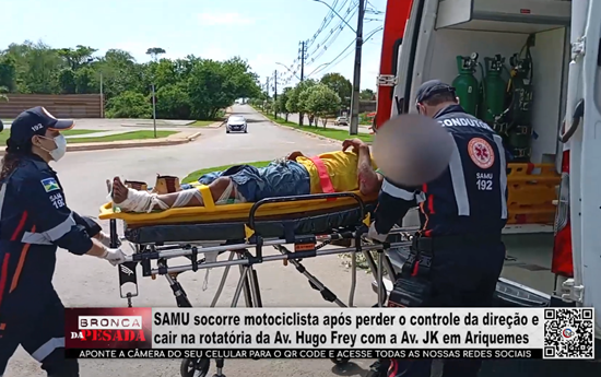 SAMU socorre motociclista após perder o controle da direção e cair na rotatória da Av. Hugo Frey com a Av. JK em Ariquemes - Vídeo