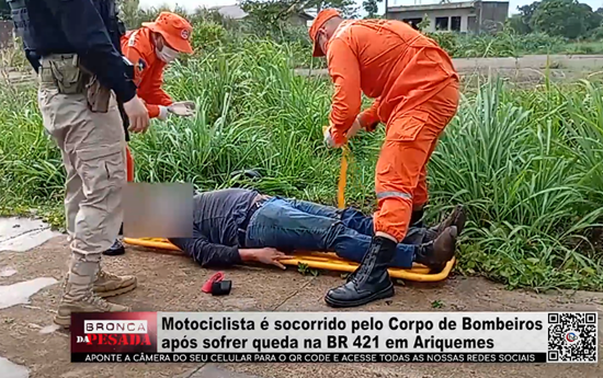 Motociclista é socorrido pelo Corpo de Bombeiros após sofrer queda na BR-421 em Ariquemes - Vídeo