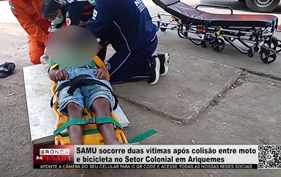 Samu socorre duas pessoas após colisão entre moto e bicicleta no Setor Colonial, em Ariquemes - Vídeo