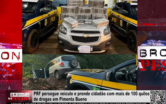 PRF persegue veículo e prende homem com mais de 100 quilos de drogas em Pimenta Bueno - Vídeo