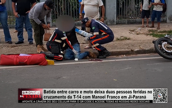 Colisão entre carro e moto deixa duas pessoas feridas no cruzamento da T-14 com Manoel Franco, em Ji-Paraná - Vídeo