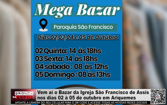 Vem aí o Bazar da Igreja São Francisco de Assis nos dias 02 à 05 de outubro em Ariquemes - Vídeo