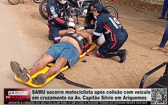 SAMU socorre motociclista após colisão com veículo em cruzamento na Av. Capitão Sílvio em Ariquemes - Vídeo