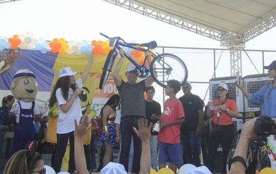 Com uma festa vibrante de alegria, cidadania e grandes ações sociais, na Praça CEU, o governo de Rondônia antecipou, neste domingo (5), o Dia das Crianças na Zona Leste de Porto Velho, contando com a presença do governador Marcos Rocha e da  primeira-dama e secretária de Estado da Mulher, da Família, da Assistência e do Desenvolvimento Social (Seas), Luana Rocha. Mais de 400 bicicletas foram sorteadas, transformando o sonho das crianças em realidade.