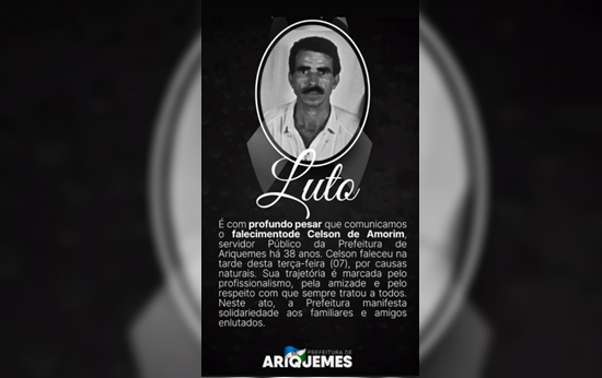 Nota pesar pelo falecimento do Sr. Celson de Amorim servidor Publico da Prefeitura de de Ariquemes