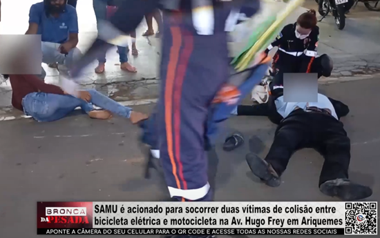 SAMU atende duas vítimas após colisão entre bicicleta elétrica e moto na Av. Hugo Frey em Ariquemes - Vídeo