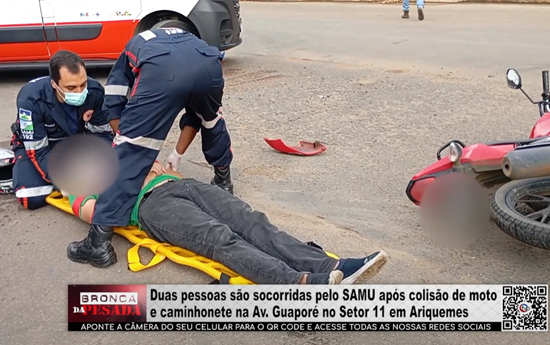 Duas pessoas são socorridas pelo SAMU após colisão de moto e caminhonete na Av. Guaporé no Setor 11 em Ariquemes - Vídeo