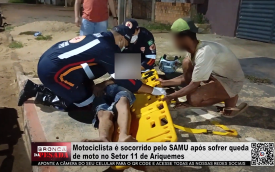 Motociclista é socorrido pelo SAMU após sofrer queda de moto no Setor 11 de Ariquemes - Vídeo