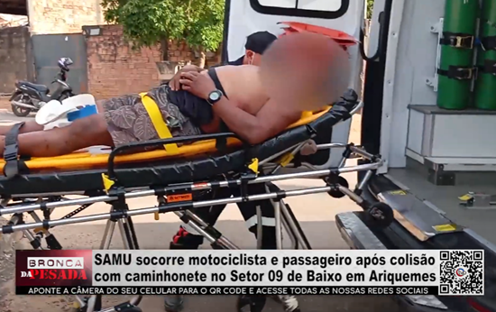 SAMU socorre motociclista e passageiro após colisão com caminhonete no Setor 09, em Ariquemes - Vídeo