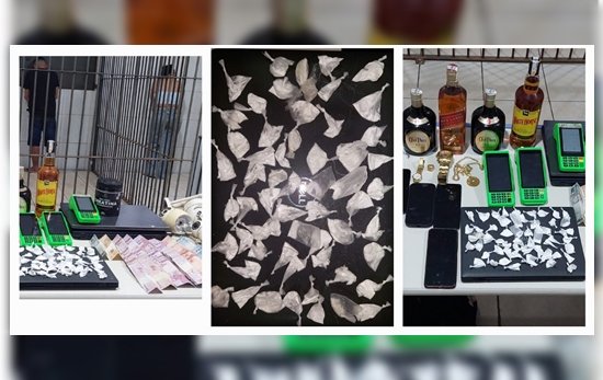 Na averiguação da residência, foram localizados outros invólucros da mesma substância, além de mais dinheiro trocado, celulares, notebooks, bebidas alcoólicas e cigarros de procedência duvidosa.