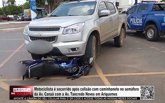 Motociclista é socorrido após colisão com caminhonete no semáforo da Av. Canaã com a Av. Tancredo Neves em Ariquemes - Vídeo