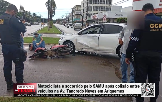 23/10/2025 : Mulher é socorrida após cair de moto em colisão com carro no trevo da BR–364 com a Avenida Jaru – Vídeo