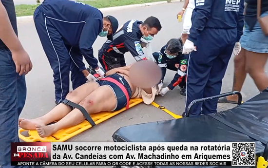SAMU socorre motociclista após queda na rotatória da Av. Candeias com Av. Machadinho em Ariquemes  - Vídeo
