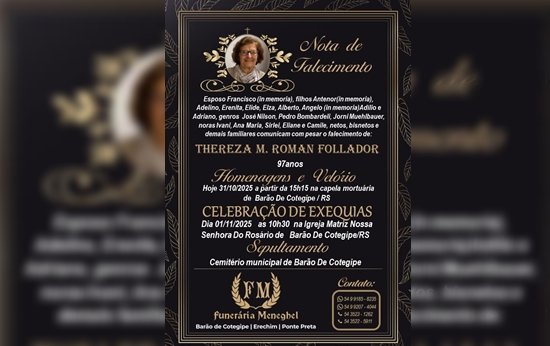 NOTA DE FALECIMENTO THEREZA M. ROMAN FOLLADOR