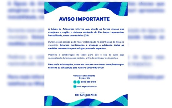 AVISO IMPORTANTE – ÁGUAS DE ARIQUEMES