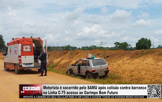 Motorista é socorrido pelo SAMU após colisão contra barranco na Linha C-75 acesso Garimpo Bom futuro - Vídeo