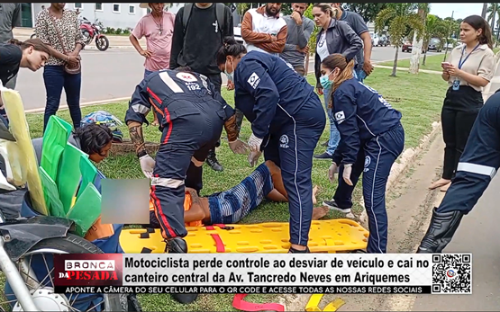 Motociclista perde controle ao desviar de veículo e cai no canteiro central da Av Tancredo Neves - Vídeo