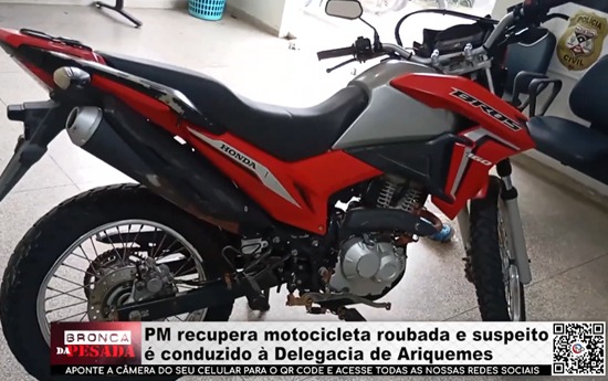 PM recupera motocicleta roubada e suspeito é conduzido à Delegacia de Ariquemes - Vídeo