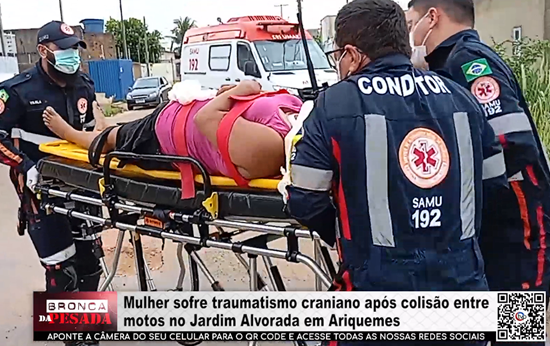 Mulher sofre traumatismo craniano após colisão entre motos no Jardim Alvorada, em Ariquemes - Vídeo