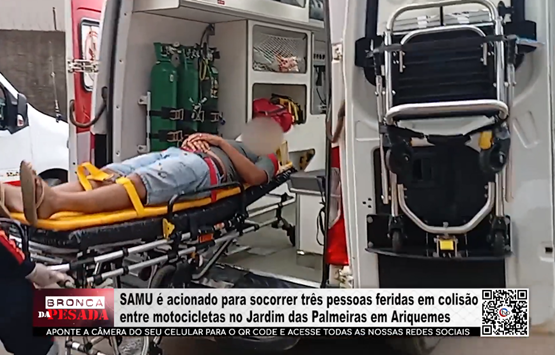 SAMU é acionado para socorrer três pessoas feridas em colisão entre motocicletas no Jardim das Palmeiras em Ariquemes - Vídeo