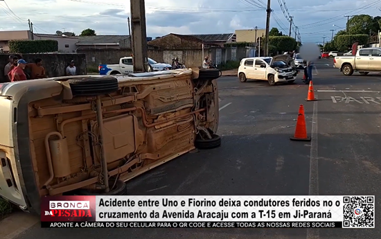 Acidente entre Uno e Fiorino deixa condutores feridos no o cruzamento da Avenida Aracaju com a T-15 em Ji-Paraná - Vídeo