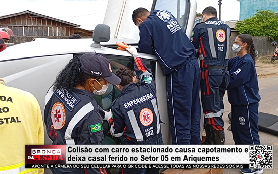 Colisão com carro estacionado causa capotamento e deixa casal ferido no Setor 05 em Ariquemes - LIVE: ESTAMOS NO AR! PROGRAMA BRONCA DA PESADA