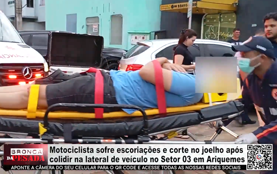 Motociclista sofre escoriações e um corte no joelho após colidir contra a lateral de um veículo no Setor 03 em Ariquemes - Vídeo