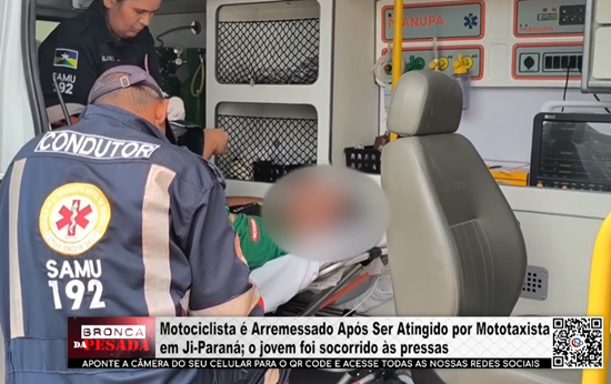 Motociclista é arremessado após ser atingido por mototaxista em Ji-Paraná; o jovem foi socorrido - Vídeo