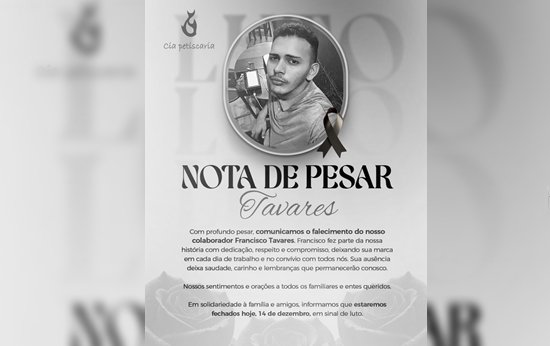 Nota De Pesar da Cia Petiscaria pelo falecimento de Francisco Tavares de Ariquemes
