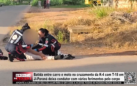 Batida entre carro e moto no cruzamento da K-4 com T-18 em Ji-Paraná deixa condutor com vários ferimentos pelo corpo - Vídeo