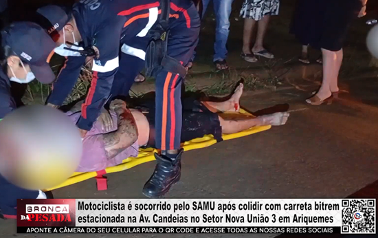 Motociclista é socorrido pelo SAMU após colidir com carreta bitrem estacionada na Av. Candeias no Setor Nova União 3 em Ariquemes - Vídeo