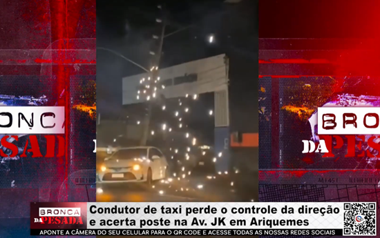 Condutor de taxi perde o controle da direção e acerta poste na Av. JK em Ariquemes - Vídeo