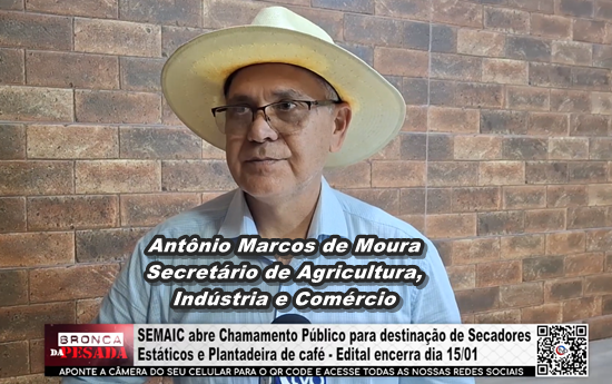 SEMAIC abre Chamamento Público para destinação de Secadores Estáticos e Plantadeira de café - Edital encerra dia 15/01 - Vídeo