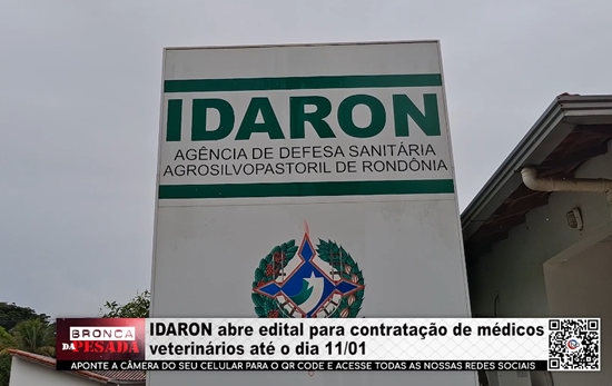 IDARON abre edital para contratação de médicos veterinários até o dia 11/01 - Vídeo