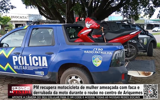 PM recupera motocicleta de mulher ameaçada com faca e derrubada da moto durante o roubo no centro em Ariquemes - Vídeo