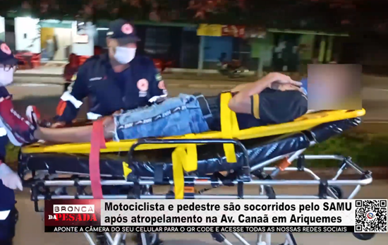 Motociclista e pedestre são socorridos pelo SAMU após atropelamento na Av.Canaã em Ariquemes- Vídeo