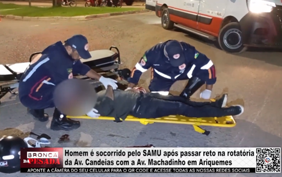 Homem é socorrido pelo SAMU após passar reto na rotatória da Av. Candeias com a Av. Machadinho em Ariquemes - Vídeo