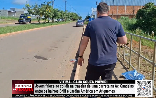 Jovem falece ao colidir na traseira de uma carreta na Av. Candeias entre os bairros BNH e Jardim América em Ariquemes - Vídeo
