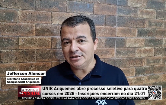 20/01/2026 : UNIR Ariquemes abre processo seletivo para quatro cursos em 2026 Inscrições encerram no dia 21/01 – Vídeo