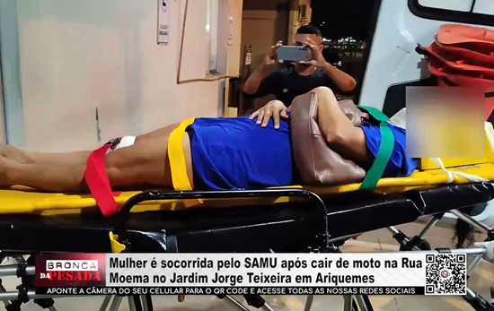 Mulher é socorrida pelo SAMU após cair de moto na Rua Moema no Jardim Jorge Teixeira em Ariquemes - Vídeo