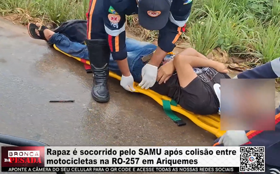 27/01/2026 : Rapaz é socorrido pelo SAMU após colisão entre motocicletas na RO–257 em Ariquemes – Vídeo